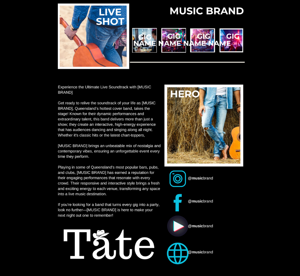 Share your story and connect audiences to all your social and music platforms.Showcase the latest press and videos to highlight your journey and impact.